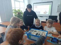 Занятие «Лего и МЫ» стало способом передачи опыта от старшеклассников малышам. Уже опытные конструкторы Мастерук Илья, Миловидов Арсений и Гасанов Руслан (учащиеся 9 классов) провели мастер-класс по созданию моделей из Лего для первоклассников.