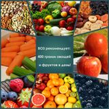 - Согласно последним рекомендациям ВОЗ, необходимо потреблять не менее 400 гр. овощей и фруктов в день.