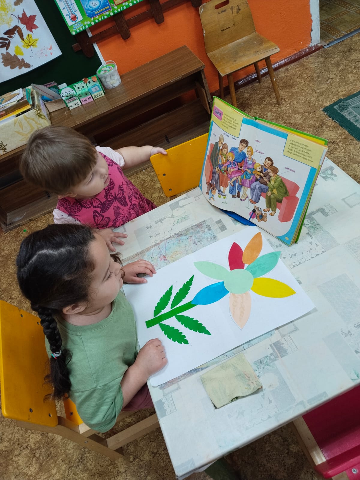 В октябре в дошкольной группе продолжается работа с детьми по реализации программы «Семья- это мы!». Воспитанникам дошкольной группы ,были предложены сюжетно-ролевые игры , в которых дети творчески воспроизводили быт семьи. Ребята младшей группы помогали маме убираться в доме, готовить обед, мыли посуду, укладывали кукол-дочек спать. В младшей группе большое внимание уделяется воспитанию любви к самым близким членам семьи - маме и папе. Беседы «Кто моя семья?», «Где моя семья живет?», «Игры с мамой» -помогли ребятам повторить и запомнить домашние адреса, имена и фамилии близких людей. С интересом малыши рассматривали иллюстрации и слушали стихи А. Барто : «Младший брат», «Купание», «Было у бабушки сорок внучат». Беседуя с детьми о мамах и рассматривая сюжетные картинки «Мама и дети», малыши обратили внимание на то, что мама заботиться обо всех членах семьи-она готовит, убирает, стирает , играет с детьми, поэтому маму надо беречь и оказывать ей посильную помощь. Итогом работы по теме стала аппликация «Цветочек счастья».