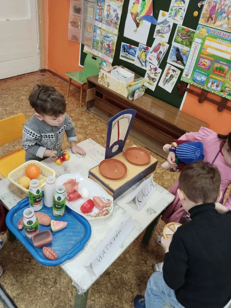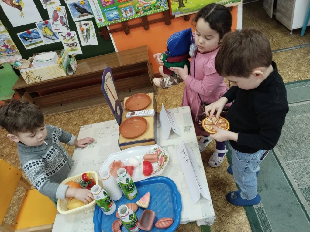 Воспитанникам дошкольной группы были предложены игровые ситуации «Семья в кафе, в магазине», в которых дети творчески воспроизводили быт семьи. Ребята познакомились и закрепили правила этикета за столом, обсудили правила поведения в магазине, в транспорте, в общественных местах. Вместе с воспитателем выбирали продукты для семейного ужина и заказывали блюда в кафе.