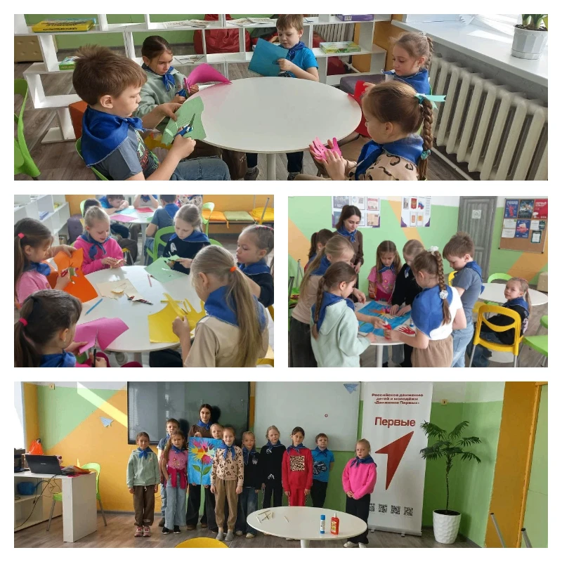 Младшие ребята создавали «Цветок дружбы». Каждый ребёнок оставил на большом листе отпечаток своей ладошки — яркий, разноцветный, неповторимый. Все ладошки соединились в один общий цветок, став символом того, что разные люди могут быть одним целым.