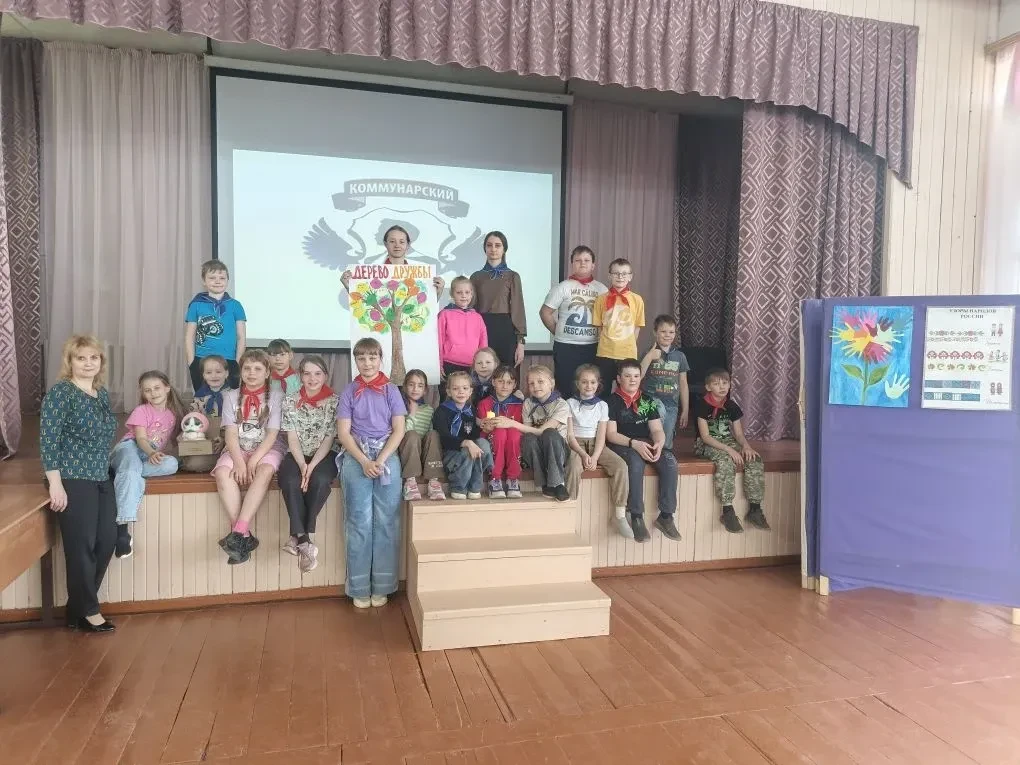 Ребята посмотрели короткий видеоролик о народах России, а затем разделились на два отряда. Младшие школьники (1–2 классы) выбрали название «Радуга», а старшие (4 класс) — «Дружба». Каждый отряд выучил свой девиз и получил настоящий галстук — символ принадлежности к коммунарскому братству.